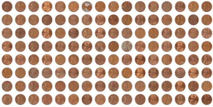 Het project vertrekt, zoals het meeste werk van Chang, vanuit een gegeven waar veel mensen vaag iets van weten, maar waar zelden met zorg of precisie over wordt nagedacht. Chang beperkte zijn verzameling specifiek tot cents die vóór 1982 zijn geslagen, het jaar waarin de U.S. Mint de samenstelling van de penny veranderde om de kosten te drukken. Voor 1982 bestonden pennies hoofdzakelijk uit koper; na die datum werden het met koper beklede zinken munten. Dit ogenschijnlijk kleine detail heeft reële gevolgen: pennies uit de eerdere periode kunnen, onder bepaalde marktomstandigheden, hun nominale waarde overstijgen als je ze louter als grondstof beschouwt. Het kopergehalte kan meer waard zijn dan één cent. Dat creëert een vreemde situatie waarin de staat elke munt blijft definiëren als exact één cent waard (en het omsmelten voor de metaalwaarde illegaal maakt), terwijl de materiële werkelijkheid van het object op een geheel andere waarde wijst. Chang behandelt dit niet als een paradox die opgelost moet worden of een probleem dat verholpen moet worden. Hij neemt het als gegeven, als een van de structurele voorwaarden die het werk mogelijk en interessant maken.